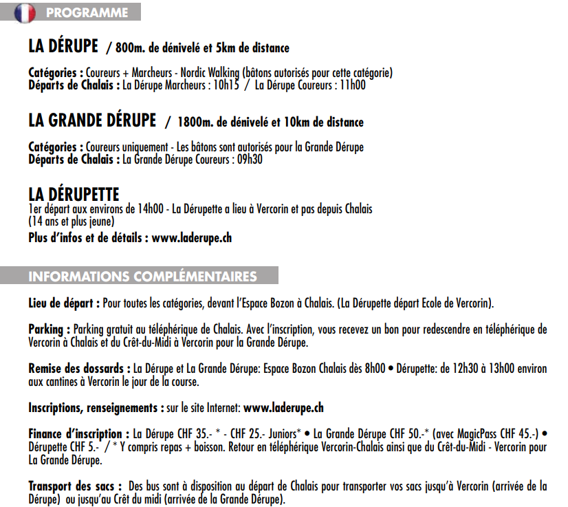 Course à pied et de Nordic Walking, La Dérupe est organisée par le Ski Club La Brentaz-Vercorin et propose 3 parcours selon l’âge et les ambitions.