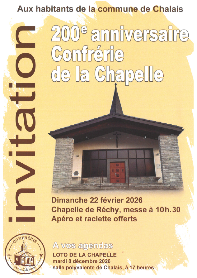 Messe à 10h30 à la Chapelle de Réchy dimanche 22 février 2026.