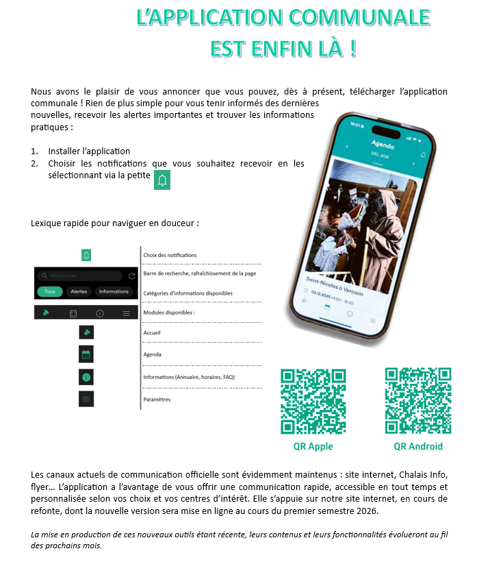 Nous avons le plaisir de vous annoncer que vous pouvez, dès à présent, télécharger l’application communale ! Rien de plus simple pour vous tenir informés des dernières nouvelles, recevoir les alertes importantes et trouver les informations pratiques.