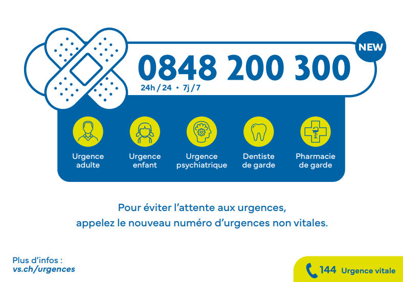 Le numéro unique pour les urgences médicales non vitales : 0848 200 300